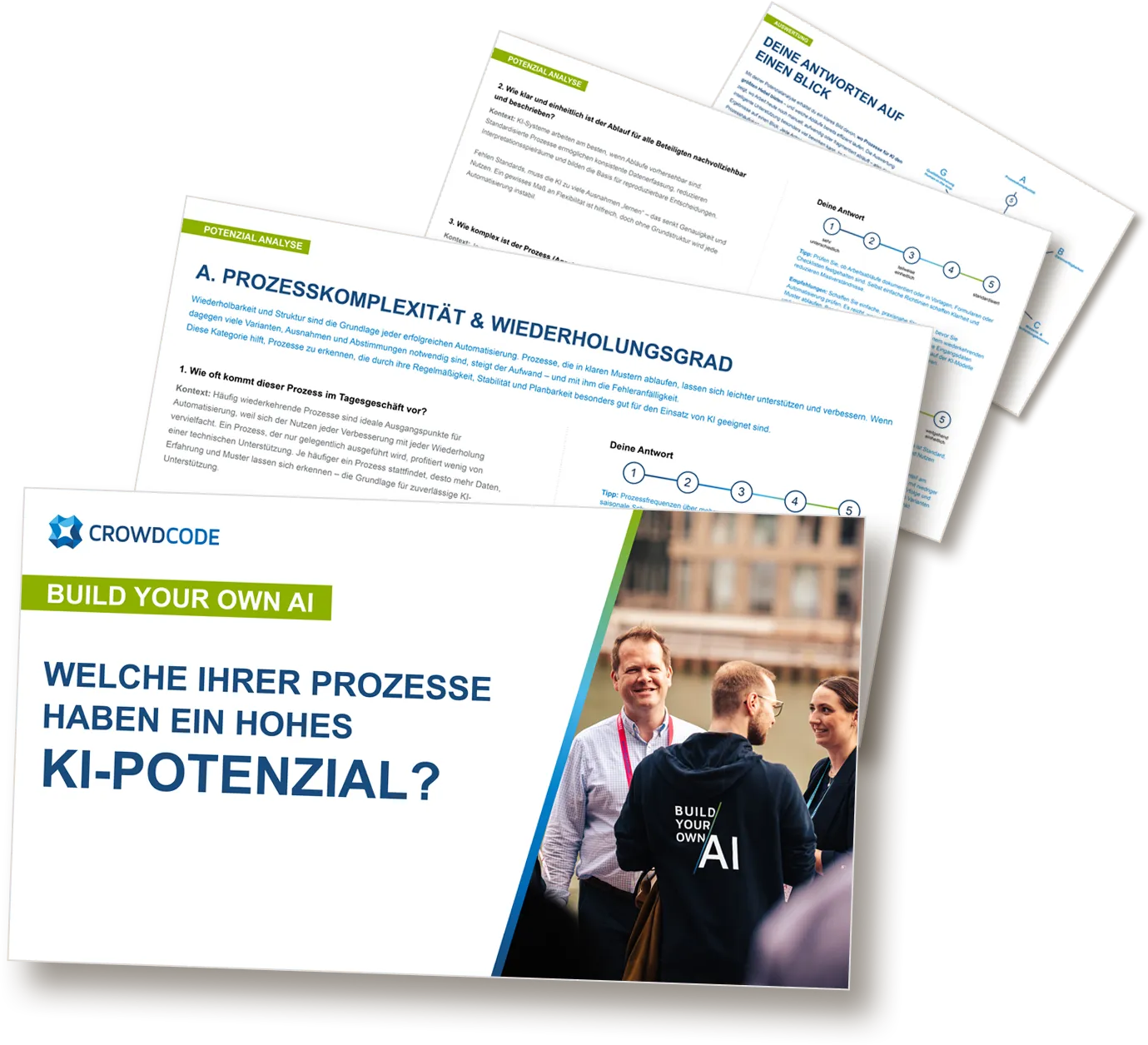 Die Potenzialanalyse zeigt, in welchen Prozessen sich Routinen bündeln, Wissen formalisieren und Entscheidungen vorbereiten lassen. Und sie macht sichtbar, wo KI-Entlastung bringen kann – ohne den Menschen aus dem Prozess zu nehmen. Die Analyse fasst unsere Erfahrung in klaren Fragen zusammen: kurz, nachvollziehbar, praxisnah. Damit Unternehmen die richtigen Faktoren erkennen – und die richtigen Entscheidungen treffen, bevor sie investieren.